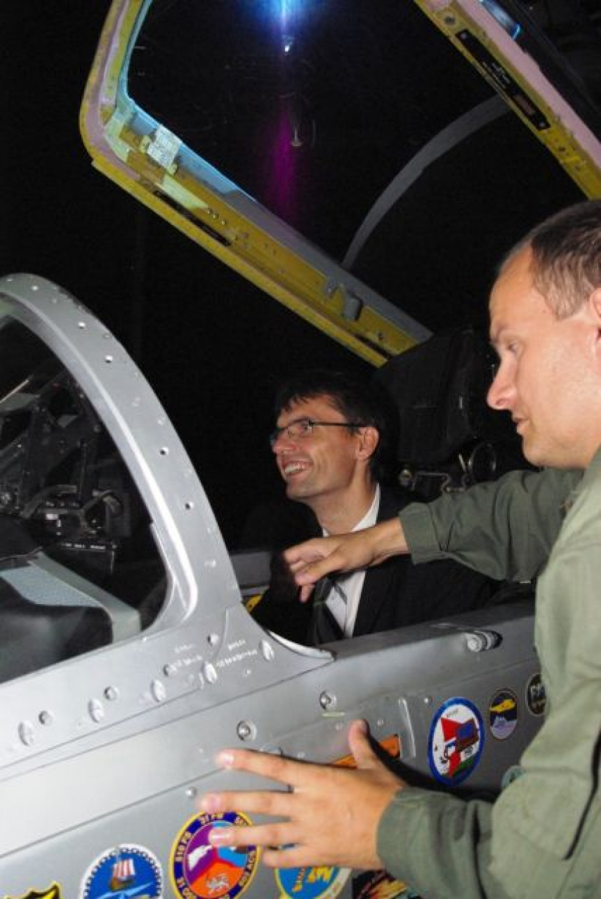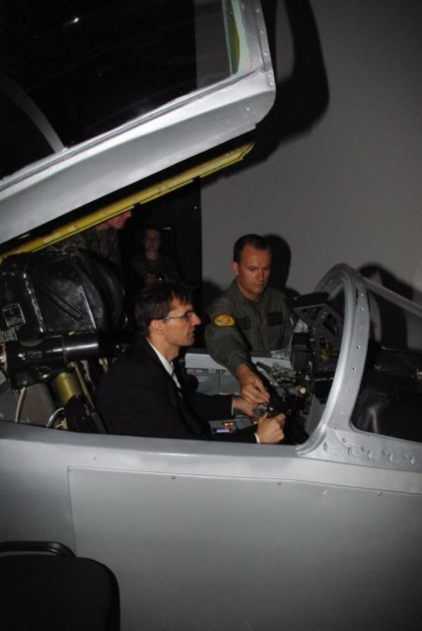 V priestoroch Zmiešaného krídla Sliač boli Ministrovi obrany predstavené letecké trenažery MiG 29, L 39 používané k výcviku pilotov, ktoré si mohol osobne vyskúšať.