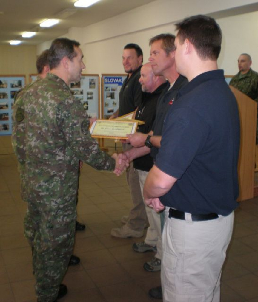 Vyhodnotenia vzájomnej spolupráce sa zúčastnil i prvý zástupca náčelníka generálneho štábu generálmajor Miroslav Kocian, zástupca veliteľa pozemných síl brigádny generál Ondřej Novosad a reprezentanti spoločnosti AT – Solutions, v ktorej pôsobia ako lektori bývalí príslušníci armády USA s bohatými praktickými skúsenosťami z misií v Iraku a Afganistane. Súčasťou ceremónie bolo aj slávnostné darovanie dvoch robotov Národnému centru EOD Nováky, symbolické ocenenie práce inštruktorov AT – Solutions a ministerstva obrany USA.