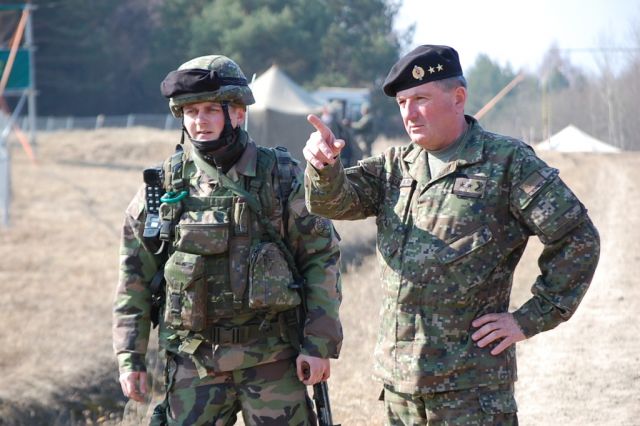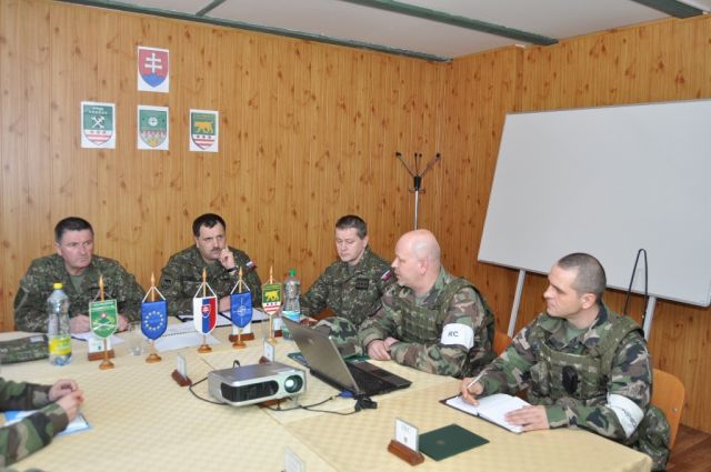 Prvé kroky veliteľa PS OS SR viedli na posádkové cvičisko a strelnicu v Ruskej Novej Vsi, kde práve vrcholí výcvik strážnej jednotky s plánovanou rotáciou v júni 2012. Oboch funkcionárov sprevádzal riadiaci cvičenia major ŠEVČÍK ktorý podal v priestoroch riadiaceho štábu veliteľovi PS OS SR aktuálnu informáciu o prebiehajúcom taktickom cvičení s bojovou streľbou.