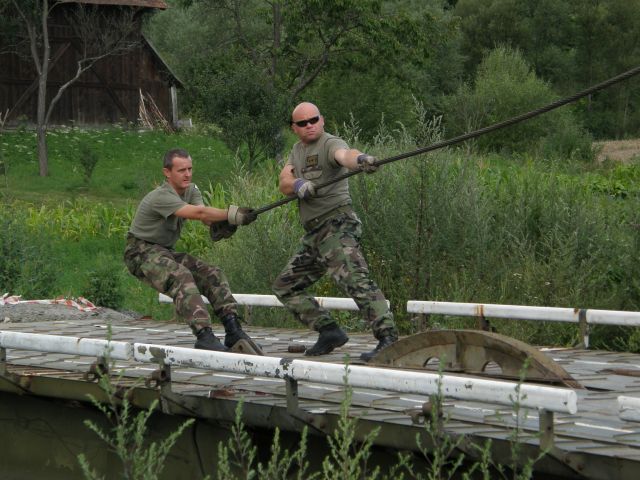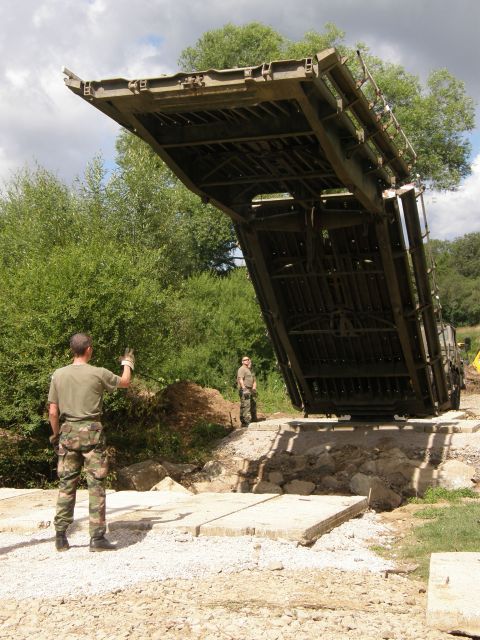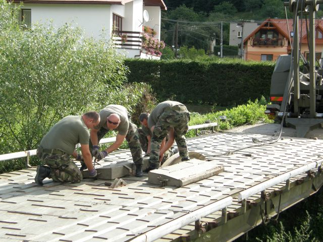 Prekládku ženijného mosta uskutočnilo družstvo mostných automobilov pod velením veliaceho poddôstojníka ženijno-mostnej čaty rotmajstra Jána Spišáka za pomoci mostného automobilu T813/AM-50 a štyroch príslušníkov družstva: desiatnika Blažeja Lojana, slobodníka Radovana Andrejova, slobodníka Mariána Pastirika a vojaka Jozefa Motyku. Celú zostavu doplnila zdravotníčka čatárka Katarína Domaracká, keďže prítomnosť zdravotníka je nutná pri všetkých typoch ženijných prác.
