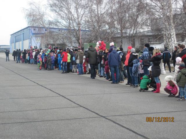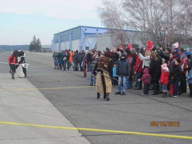 Úderom desiatej hodiny “priletel“ v sobotu 8. decembra 2012, v sprievode anjela a čertov, na letisko dopravného krídla v Kuchyni Mikuláš. Jeho príchod očakávalo okolo 140 detí s rodičmi, či starými rodičmi. Na začiatku stretnutia všetkých prítomných srdečne pozdravil. Deti so žiariacimi očami sledovali kôš plný sladkostí, ktoré v ňom priniesol. Niektoré deti sa však trochu báli čerta. Ich strach premohla len obrovská túžba držať vysnívané darčeky vo vlastných rukách i veľká chuť prezentovať sa naučenými básničkami a pesničkami pred dobrým Mikulášom. Na záver si s deťmi zatancoval a prisľúbil, že určite príde aj na budúci rok.