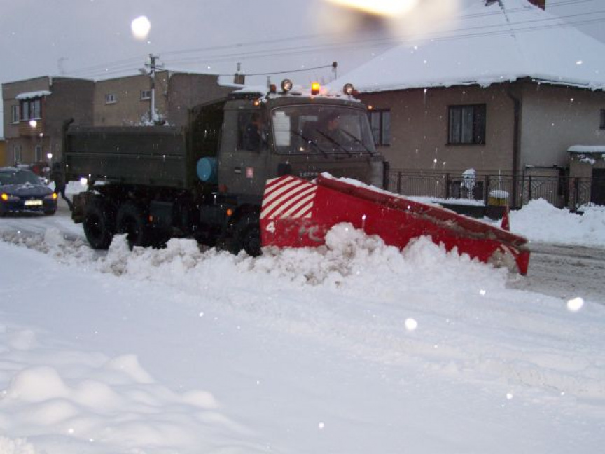 Na základe požiadavky krízového štábu obvodného úradu mesta Prešov nasadili dnes ozbrojené sily SR v popoludňajších hodinách nákladný automobil Tatru T-815 s radlicou na pomoc obyvateľom mesta Prešov, ktoré celý deň bojuje so snehovou kalamitou.