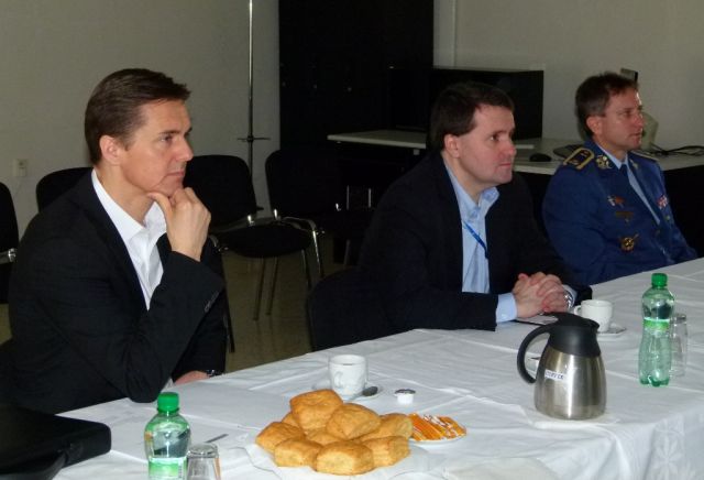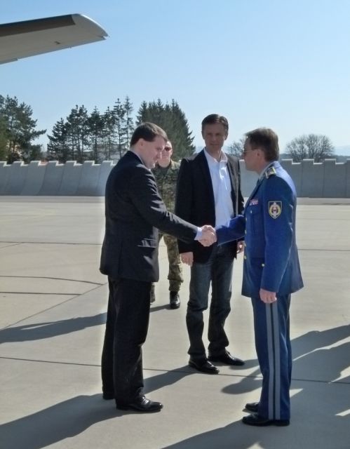 Na pôde leteckej základne privítal štátnych tajomníkov veliteľ Vzdušných síl brigádny generál Miroslav Korba. Veliteľ zmiešaného krídla plukovník Vladimír Lisý delegáciu oboznámil s históriou, hlavnými úlohami, poslaním a plánovanými leteckými aktivitami zmiešaného krídla. Plukovník Lisý vyzdvihol vynikajúcu spoluprácu počas medzinárodného cvičenia Eagle Talon v Poľsku, ktorého sa príslušníci krídla pravidelne zúčastňujú.