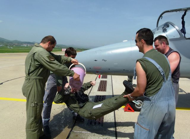Veliteľ zmiešaného krídla Sliač plukovník Vladimír Lisý, ako aj najbližší kolegovia poručíkovi Poklembovi po úspešnom pristáti zablahoželali. Po gratuláciách nasledoval tradičný ceremoniál v podobe vodného kúpeľa a „hobľa“ o trup lietadla.