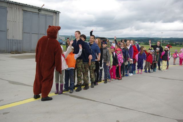 Príslušníci vzdušných síl venovali dnešný deň deťom a môžme zhodnotiť, že misia dňa "vyčariť úsmev na ich tváričkách" bola splnená a sme nesmierne radi a vďační, že i napriek nie veľmi príjemnému počasiu, prijali naše pozvanie a prišli medzi nás. Veď napokon každý z nás bol raz jedným z nich ...