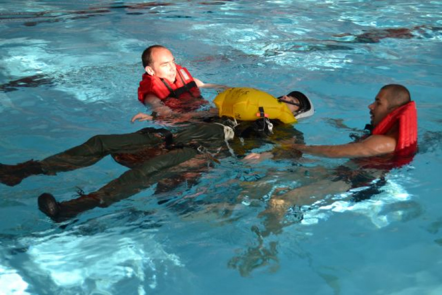 Hlavnou úlohou výcviku v bazéne je získať špeciálne zručnosti a zároveň precvičiť situácie, ktoré lietajúci personál môže využiť v rozhodujúcich situáciách, ako napríklad záchrana ľudského života. Cvičenie v bazéne je prispôsobené potrebám, poznatkom a praktickým skúsenostiam z lietania. Vodné prostredie dokáže imitovať bezváhový stav a z hľadiska úrazovosti je bezpečné. Tiež sa v ňom dobre precvičujú orientačné schopnosti aj zaťažovanie orgánu rovnováhy, ktorý sa nachádza v strednom uchu.