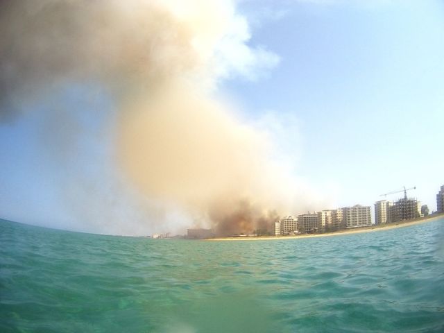 Slovenskí vojaci majú svoje pozície na strechách bývalých apartmánových domov, takže nebolo pre nich ťažké spozorovať oheň. O tom, že sa vytvárajú ohniská aj na strechách budov informovali požiarnikov práve oni. Miestni požiarnici a turecké vojská zvládali situáciu veľmi dobre, oheň zastavili 100 metrov od UN pozície. Aj tak sa nedalo vyhnúť vytváraniu malých požiarov v podstate kdekoľvek, keďže vietor tiež zohrával svoju úlohu. Palmy horeli ako zápalky do niekoľkých sekúnd. Zhorelo približne 30 percent oblasti.