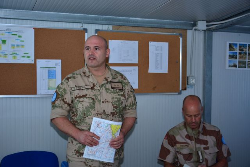 Inšpekcia bola zahájená na brífingovej miestnosti ženijnej čaty v tábore „Tatry“ oboznámením sa s aktuálnou situáciou a pracovnými úlohami formou informačného brífingu a zodpovedaním na dodatočné otázky členov tímu. Brífing vykonal osobne náčelník ženijnej služby podplukovník Pavol Kobík, ktorý patrí tiež k novým príslušníkom slovenského kontingentu a prišiel do operácie UNFICYP z predchádzajúcej pozície veliteľa práporu logistickej podpory 2.mb v Prešove.