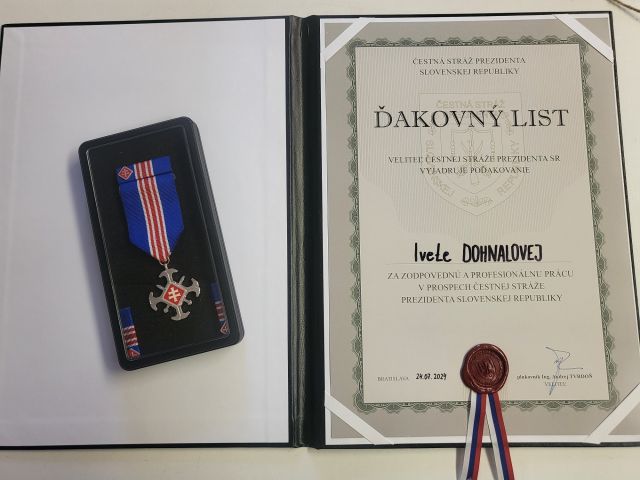 V stredu 24. júla sa v priestoroch sále cti a slávy uskutočnil slávnostný nástup k významnému životnému jubileu dlhoročnej zamestnankyne útvaru Čestnej stráže prezidenta SR Ivety DOHNALOVEJ. Pri tejto milej príležitosti veliteľ Čestnej stráže prezidenta SR plukovník Andrej TVRDOŇ poprial oslávenkyni pevné zdravie, spokojnosť a pohodu v pracovnom aj osobnom živote a zároveň jej odovzdal vojenské vyznamenanie „Pamätný kríž Náčelníka Generálneho štábu ozbrojených síl SR“ II. stupňa (strieborný) za prínos a obetavú prácu v prospech celého útvaru. Pani Iveta DOHNALOVÁ je dlhoročnou zamestnankyňou v ozbrojených silách, už v roku 1993 nastúpila ako zamestnankyňa na Pluk hradnej a čestnej stráže a v roku 2012 prišla na útvar Čestnej stráže prezidenta SR.