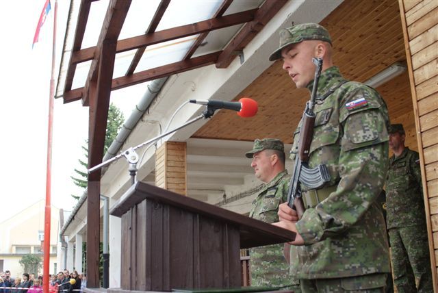 Čerstvým absolventom základného vojenského výcviku sa prihovoril aj hlavný poddôstojník OS SR štábny nadrotmajster Vladimír Beluš. „Ozbrojené sily Slovenskej republiky v súčasnej dobe potrebujú predovšetkým kvalitne teoreticky pripravených i prakticky vycvičených vojenských profesionálov. Preto vyslovujem potešenie, že dnes môžem stáť pred 192 absolventmi základného vojenského výcviku“.