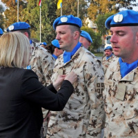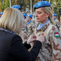 Po príhovore nasledovala najočakávanejšia časť ceremoniálu – slávnostné udelenie medailí a strieborných čísel. Ocenených bolo 68 príslušníkov Sektoru 4 a štyria profesionálny vojaci zo slovenskej ženijnej čaty. K oceneným vojakom sa následne prihovorila p. Elizabeth Spehar, ktorá pripomenula náročné úlohy, ktoré plnia vojaci zo Sektoru 4 v nárazníkovej zóne, ale spomenula aj aktuálne problémy, súvisiace s vyjednávaním o zjednotenie ostrova, ktoré sa priamo dotýkajú aj plnenia operačných úloh v priestore zodpovednosti Sektoru 4. Na záver svojho prejavu zagratulovala vojakom k tomuto oceneniu a poďakovala im za prácu, ktorú odvádzajú v prospech operácie UNFICYP a v prospech udržania mieru na Cypre. Ceremoniál zakončili jednotky Sektoru 4 slávnostným pochodom. Po oficiálnej časti ceremoniálu boli všetci hostia a ocenení vojaci pozvaní na slávnostnú recepciu v priestoroch NCO Mess Hall.
