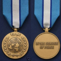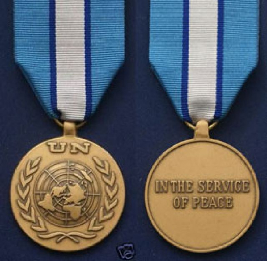 Medaila Spojených národov je udeľovaná od roku 1950, kedy bola prvýkrát udelená vojakom, ktorí boli súčasťou obrany Južnej Kórei proti Severnej Kórei počas Kórejskej vojny (1950-1953). Preto bol aj jej pôvodný názov „Kórejska medaila OSN“. Od roku 1955 sa postupne začali vytvárať ďalšie medaile udeľované participujúcim vojskám v rozličných operáciách pod hlavičkou OSN. Táto medaila je udeľovaná za účasť v spoločných vojenských a policajných operáciách na udržanie mieru, pri poskytovaní humanitárnej pomoci a pomoc po rôznych katastrofách. Medailu za službu v OSN dostáva každý vojak slúžiaci pod modrou vlajkou po odslúžených 90 dňoch. Následne sa za každých ďalších 180 dní služby udeľujú strieborné čísla.