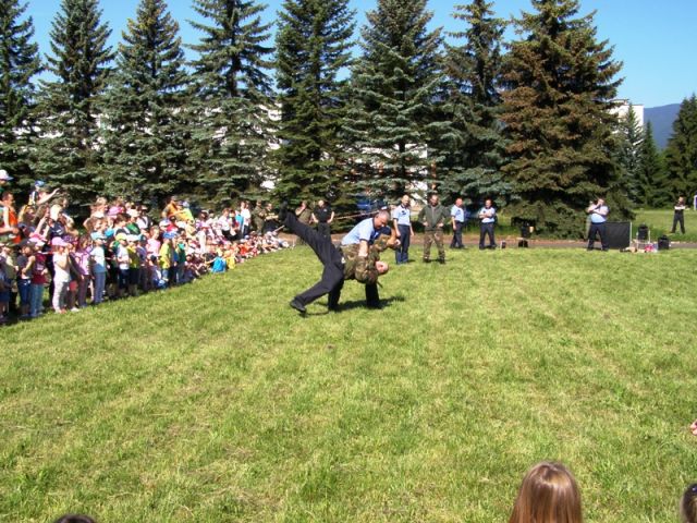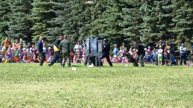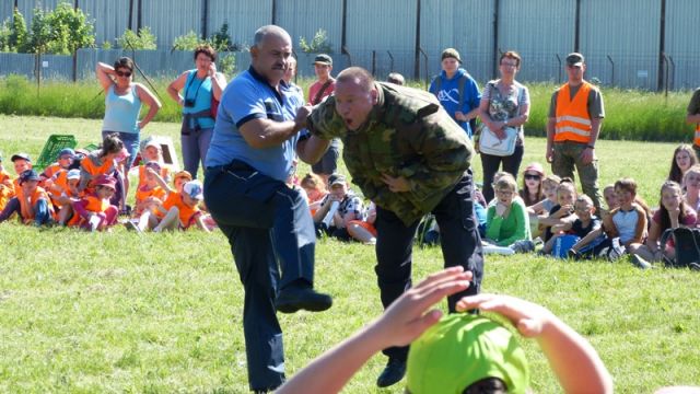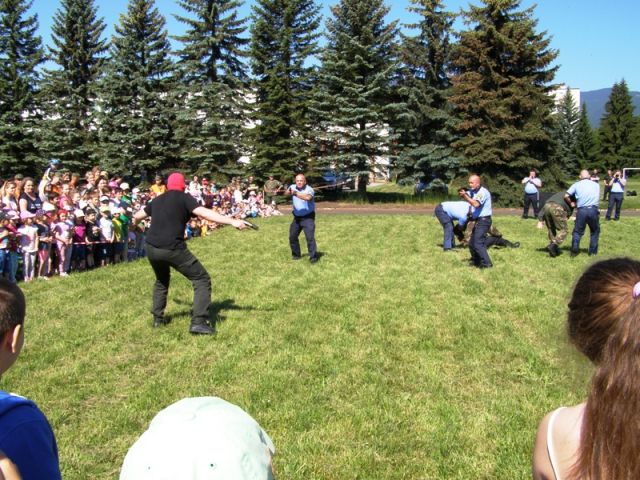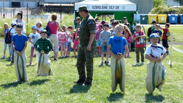 Na futbalovom ihrisku v areáli základne pripravili policajti ukážky sebaobrany a ukážky práce kynológov. Personálny úrad OS SR prichystal pre deti rôzne súťaže ako skákanie vo vreci a pod..