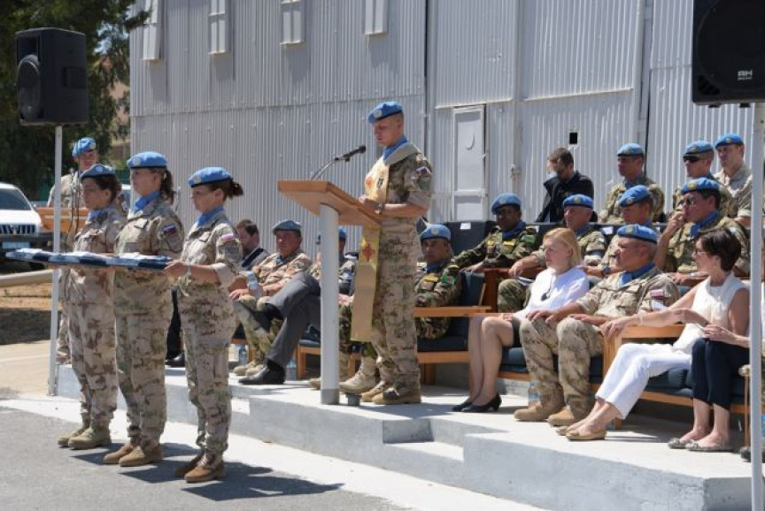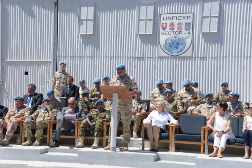Na úvod privítali nastúpené jednotky Sektoru 4 hlavnú politickú predstaviteľku operácie UNFICYP p. Elizabeth SPEHAR a vojenského veliteľa operácie generálmajora Mohammada Humayun Kabira. Ceremoniál pokračoval slávnostným vztyčovaním vlajky OSN a vlajok kontingentov participujúcich v Sektore 4. Úvodné slovo už tradične patrilo veliteľovi Sektoru 4 pplk. Rudolfovi EŠTÓKOVI, ktorý vyzdvihol vysokú úroveň spolupráce štyroch národov v Sektore 4 a poďakoval všetkým profesionálnym vojakom za výborne odvedenú prácu a dosiahnuté výsledky. Rovnako poďakoval aj príslušníkom veliteľstva operácie za podporu a pomoc pri plnení náročných operačných úloh.