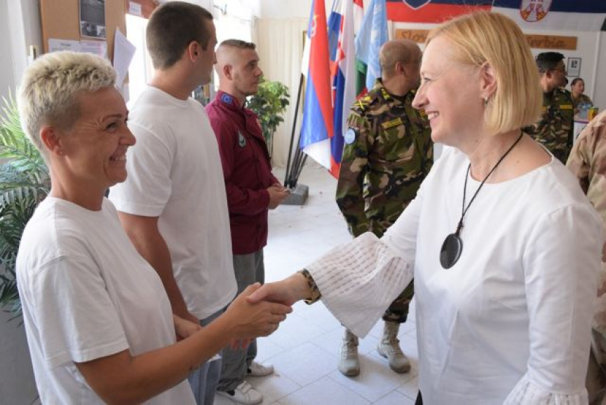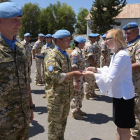 K oceneným vojakom sa prihovorila p. Elizabeth SPEHAR. V príhovore poďakovala všetkým príslušníkom Sektoru 4 za ich profesionálny prístup k plneniu náročných operačných úloh v nárazníkovej zóne v prospech operácie UNFICYP a v prospech udržania mieru a zagratulovala oceneným vojakom k tomuto vyznamenaniu.