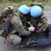 Výcvik kľúčového personálu vo VJVM pokračoval v druhom týždni prevažne praktickými zamestnaniami zo zdravotnej prípravy a nácvikmi reakcií na rôzne druhy incidentov, s ktorými sa cvičiaci môžu stretnúť počas operácie.