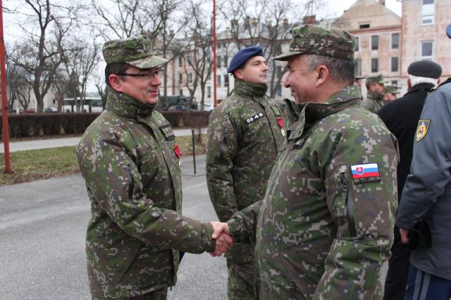 V priestoroch sokolovských kasárni ho privítal veliteľ Pozemných síl Ozbrojených síl SR generálmajor Jindřich Joch, veliteľ Prešovskej mechanizovanej brigády brigádny generál Vladimír Kubáň, zástupca veliteľa Vzdušných síl Ozbrojených síl SR Róbert Kleštinec, riaditeľ Vojenskej polície plukovník Michal Migát a generálmajor vo výslužbe Marián Horský.