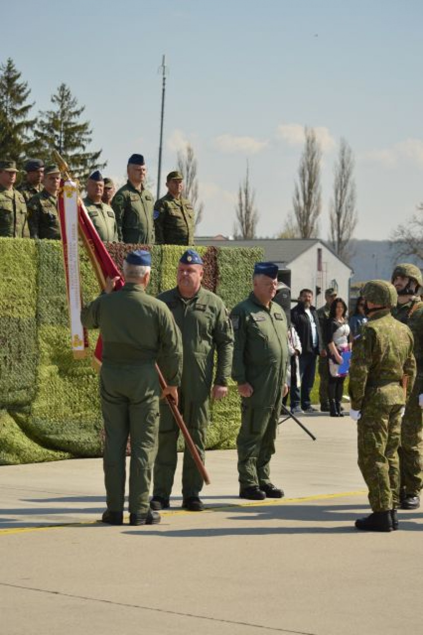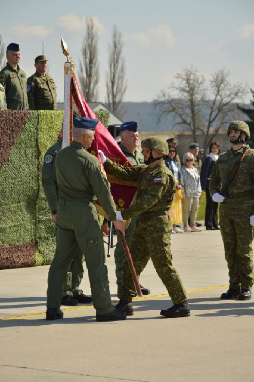 Nasledovalo symbolické odovzdanie a prevzatie bojovej zástavy 81. krídla Sliač medzi odchádzajúcim a nastupujúcim veliteľom krídla.