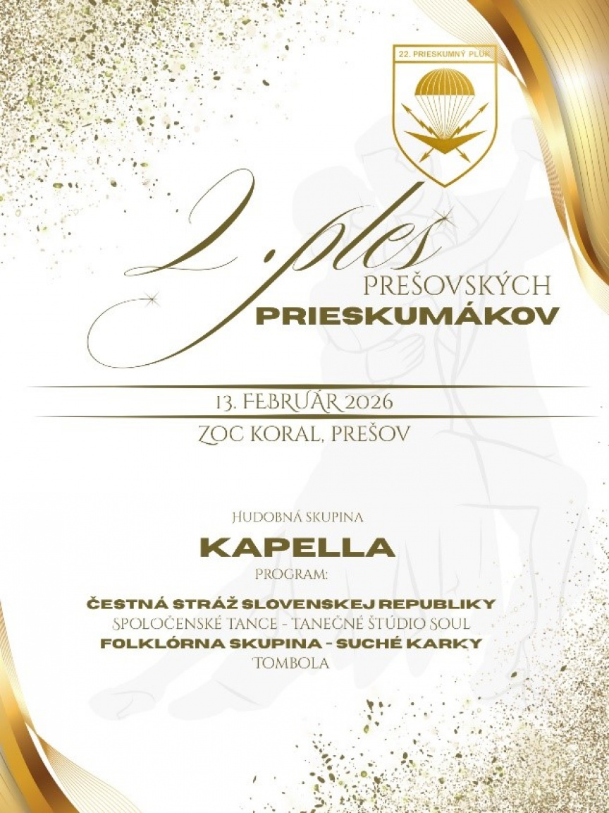 Dňa 13.februára 2026 sa uskutočnil 2.ročník plesu prešovských prieskumákov. Ples sa niesol v slávnostnom a elegantnom duchu. Veliteľ 22.prieskumného pluku (ďalej „22.psp“), plukovník Marián Brinček sa v úvodnom prejave prihovoril svojim prieskumákom, ktorým výnimočne povolil byť videnými, a zároveň poďakoval ich polovičkám za ich podporu, ktorá tvorí bezpečný prístav, do ktorého sa môžu po splnení bojových úloh vrátiť.