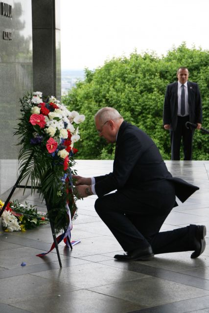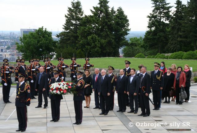 V predpoludňajších hodinách prišiel vzdať úctu k monumentálnemu vojnovému pamätníku venovanému sovietskym vojakom prezident SR Ivan Gašparovič, ako aj predstavitelia Kancelárie prezidenta SR a Vojenskej kancelárie prezidenta SR.