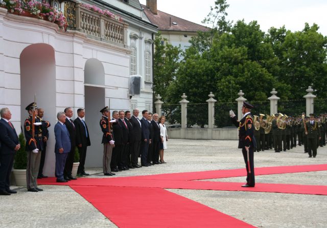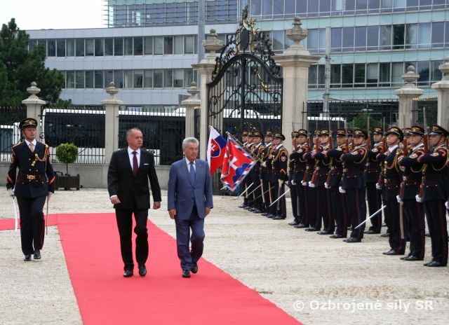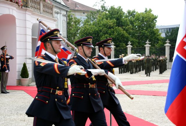 Najvyššieho predstaviteľa Rakúskej republiky privítali plnými poctami na prednom nádvorí Prezidentského paláca príslušníci Čestnej stráže prezidenta SR pod velením veliteľa útvaru plukovníka Miroslava Ištvána.