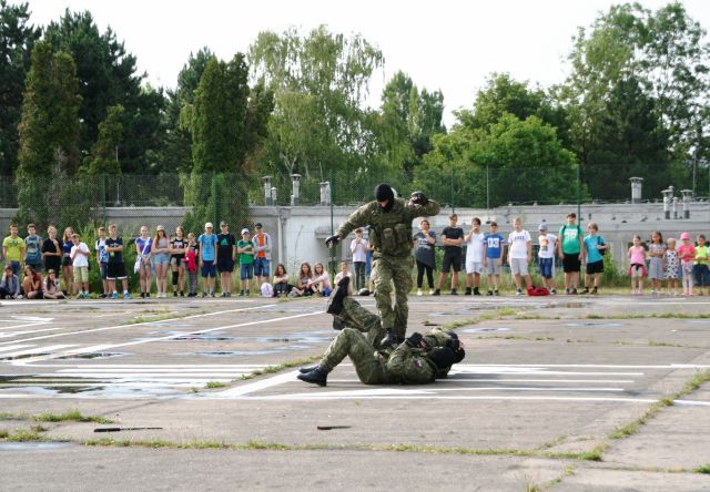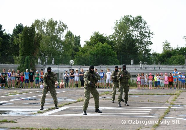 Úsmev na tvárach detí vyčarila dynamická ukážka boja zblízka pod vedením desiatnika Petra Helešica, ako aj ukážka netradičných cvikov so zbraňou pod vedením čatára Stanislava Štrbavého. Po skončení prezentácie útvaru nasledovalo spoločné fotenie s prezidentovými mužmi.