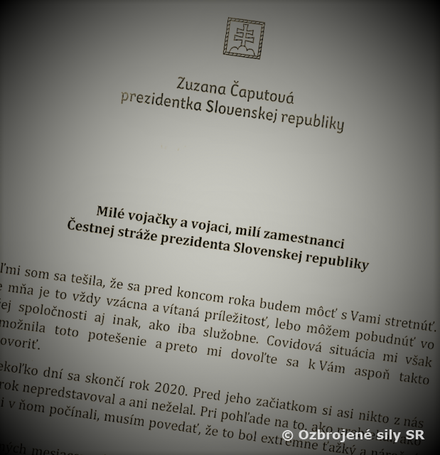 Dňa 18. decembra prezidentka SR zaslala príslušníkom Čestnej stráže prezidenta SR list, v ktorom poďakovala za plnenie úloh v roku 2020 všetkým profesionálnym vojakom, vojačkám a zamestnancom.