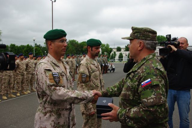 Počas slávnostného nástupu si 133 profesionálnych vojakov prevzalo z rúk ministra obrany Jaroslava Bašku a náčelníka Generálneho štábu generála Ľubomíra Bulíka medaily za účasť vo vojenskej operácii.