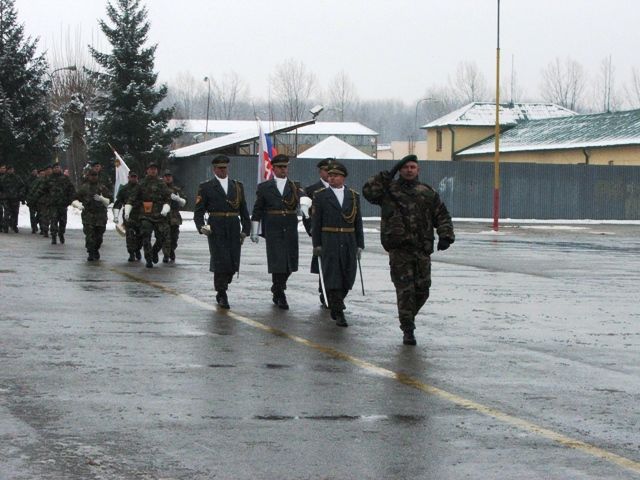 Za účasti veliteľa centra riadenia operácií GŠ OS SR plukovníka generálneho štábu Jindřicha Jocha sa so želaním šťastného návratu s príslušníkmi jednotky EUFOR - ALTHEA rozlúčil veliteľ Pozemných síl OS SR generálmajor Jaroslav Vývlek.