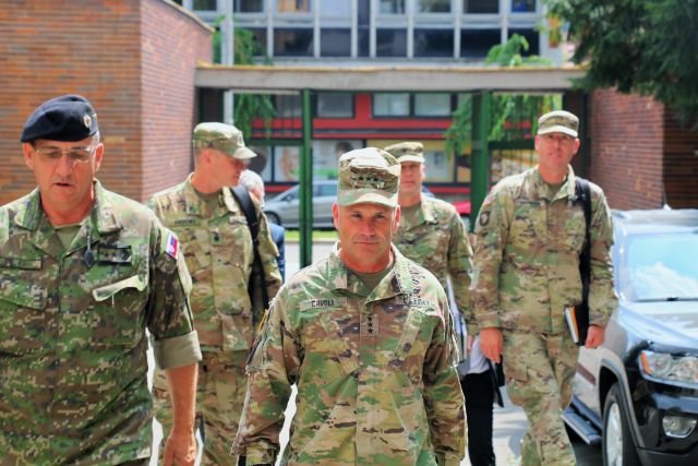 Veliteľ pozemných síl generálmajor Jindřich Joch privítal 8. augusta 2019 na pôde veliteľstva pozemných síl generálporučíka Christophera G. Cavoliho, veliteľa pozemných síl USA v Európe, spolu s delegáciou.