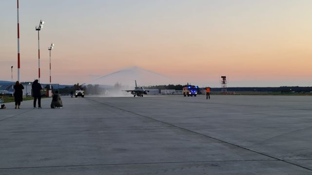 Momentálne je na letisku v Kuchyni už 7 kusov tejto impozantnej techniky. Počas slávnostnej ceremónie privítania lietadiel F-16 bola vytvorená z dvoch automobilov vojenskej hasičskej jednotky takzvaná „slavobrána“, ktorá sa používa ako symbol privítania novej leteckej techniky vo vojenskom útvare. Veliteľ 46. krídla privítal nové lietadla s nadšením, že flotila lietadiel F-16 sa znovu rozrástla.