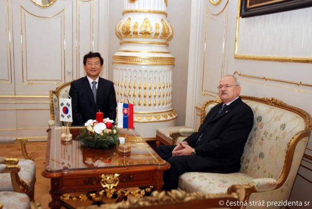 Po tomto stretnutí prezident prijal poverovacie listiny od mimoriadneho a splnomocneného veľvyslanca Kórejskej republiky v SR Seok-Soong Seoa. Ivan Gašparovič počas rozhovoru vyzdvihol veľmi dobré ekonomické aj politické vzťahy, pričom Slovensko má záujem posilniť spoluprácu s Kórejskou republikou v oblasti kultúry, vedy, školstva a cestovného ruchu. Ekonomické vzťahy posilňuje aj podpora oboch štátov žilinskej automobilke.