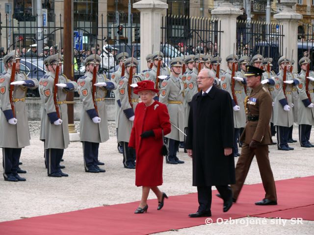 Slávnostným privítacím ceremoniálom na nádvorí Prezidentského paláca v Bratislave začala historicky prvú dvojdňovú oficiálnu návštevu Slovenskej republiky britská kráľovná Alžbeta II. s manželom, princom Philipom, vojvodom z Edinburghu.