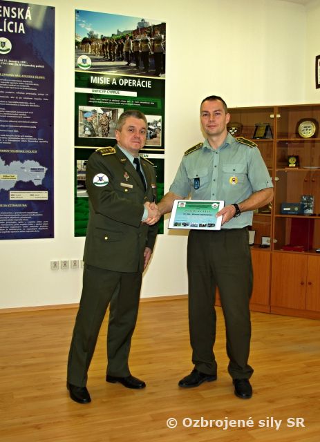 Udelenie ďakovného listu Vedúcemu oddelenia vyšetrovania Dňa 6.11.2015 udelil riaditeľ Vojenskej polície plukovník Ing. Milan HAMAR, PhD. ďakovný list Vedúcemu oddelenia vyšetrovania mjr. Mgr. Milanovi Cerovskému za jeho pôsobenie vo Vojenskej polícii z dôvodu vyslania na plnenie úloh mimo územia SR v mierovej pozorovateľskej misii OSN UNTSO Blízky Východ.