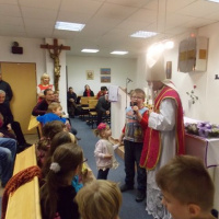 Pred jeho príchodom si nedočkavé deti vypočuli z úst tety Majky príbeh o svätom Mikulášovi a adventnom čase. A potom sa spoločne spevom snažili privolať Mikuláša. Podarilo sa a do kaplnky vstúpil Mikuláš so svojimi pomocníkmi. Nedočkavé očká našich ratolestí upreli svoj pohľad už len na jednu osobu a úpenlivo čakali, kedy prídu na rad, aby sa mohli pred Mikulášom pochváliť peknou básničkou, pesničkou, alebo len tak byť v jeho blízkosti. Za ich odvahu, nádherné výkony a presvedčenie, že počúvali celý rok, ich Mikuláš odmenil sladkou odmenou.
