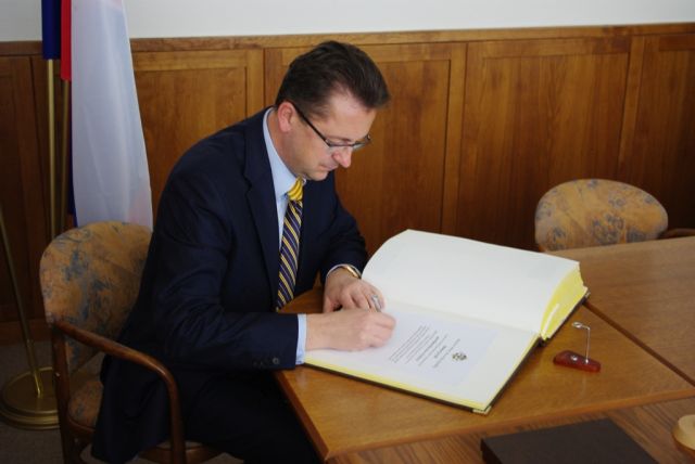Na pôde veliteľstva PS ministra obrany a jeho delegáciu, privítal zástupca veliteľa pozemných síl brigádny generál Ondřej Novosad.