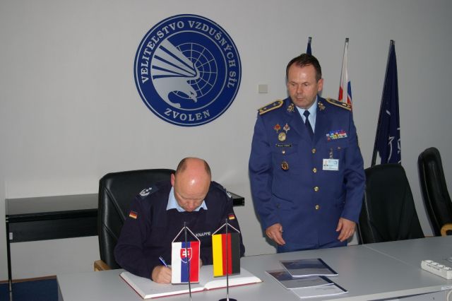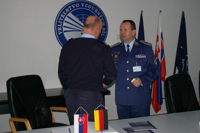 V stredu, 12. októbra zástupca veliteľa vzdušných síl brigádny generál Miroslav Lorinc srdečne privítal na pôde taktického krídla Sliač vedúceho delegácie plukovníka Wernera Knappeho v sprievode pridelenca obrany Spolkovej republiky Nemecka podplukovníka Rüdigera Heinricha a majora Franka Demminga.
