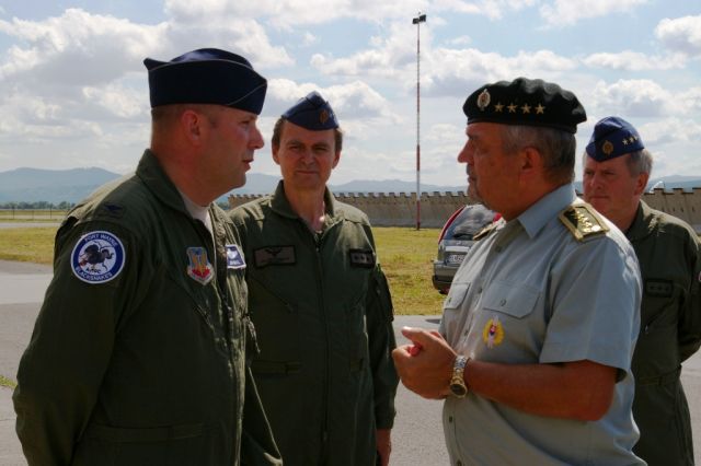 Na pôde letiska ich privítal riadiaci spoločného lietania SLOVAK WARTHOG plukovník Igor Brandabura, veliteľ taktického krídla plukovník Vladimír Lisý a za americkú stranu plukovník Kyle Noel.