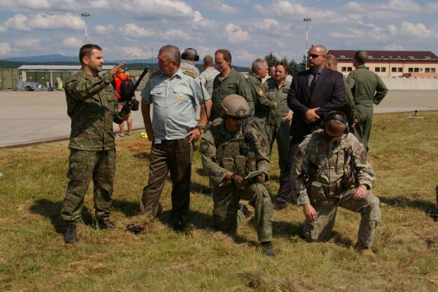V rámci lietania predviedli príslušníci 5. pluku špeciálneho určenia v súčinnosti s NGI generálovi Maximovi postupy navádzania cvičných lietadiel L-39 a A-10 na pozemné ciele. Plukovník Noel predstavili náčelníkovi GŠ leteckú techniku typu A-10C THUNDERBOLT, špeciálne zbraňové systémy a v kokpite lietadla mu vysvetlil jednotlivé funkcie a spôsobilosti predvádzanej techniky. Na záver mu ukázal mobilné riadiace stredisko. NGŠ ocenil význam spoločného výcviku prinášajúci zlepšenie vzájomnej interoperability pri viacerých druhoch spôsobilostí.
