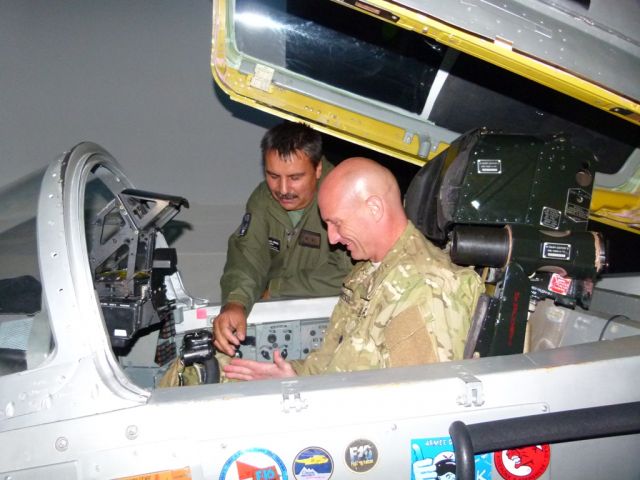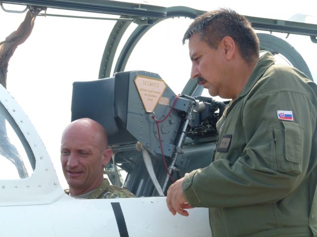 Následne delegácia pokračovala v pracovnej návšteve na leteckej základni Sliač. Tu ich privítal a sprevádzal zástupca veliteľa podplukovník Martin Hronec. V priestoroch trenažérového centra im bola formou prezentácie podaná informácia o histórii, úlohách, poslaní a štruktúre tejto leteckej základne. Súčasťou programu bola aj statická ukážka lietadiel MiG-29 a L-39.