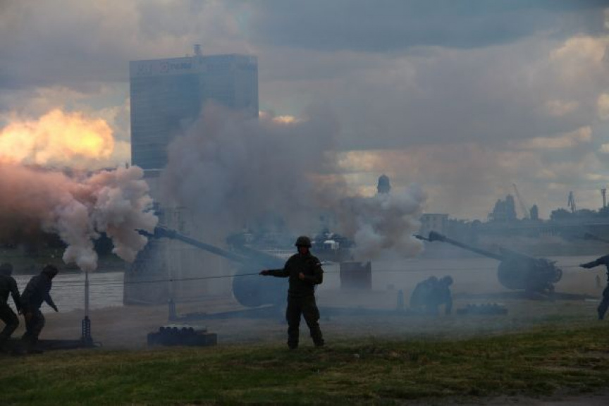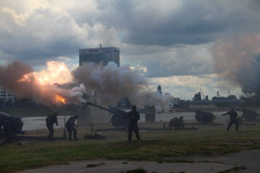 Delostrelecké salvy zo šiestich 122 milimetrových húfnic D-30A, ktoré burácali do tónov hymny Slovenskej republiky, odpálili vojaci z rožňavského raketometného oddielu pod vedením kapitána Norberta Hutku.