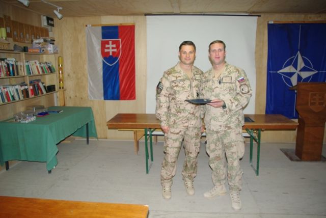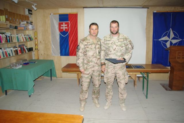 Pri príležitosti ukončenia pôsobenia vo vojenskej operácii ISAF veliaci poddôstojník slovenského kontingentu ISAF, štábny nadrotmajster Rastislav Bodnár, pamätným odznakom vojenského veterána a ďakovným listom ocenil najlepších príslušníkov slovenského kontingentu z radov poddôstojníkov a mužstva. Vybrať najlepších vojakov z vyše stovky odchádzajúcich príslušníkov strážnej jednotky KAF (Kandahar Airfield), multifunkčnej ženijnej roty, strážnej jednotky Tarin Kowt, CSS MAT (Military Advisor Team) Tarin Kowt a EOD (Explosive Ordnance Disposal) nebolo vôbec ľahké, lebo všetci svojou službou potvrdili vysokú profesionalitu, pozitívnu odbornú aj ľudskú stránku svojej osobnosti. O tom svedčia aj slová chvály z úst samotného veliteľa vojenskej základne KAF (Kandahar Airfield) ktoré povedal počas slávnostného ceremoniálu udeľovania medailí za službu vo vojenskej operácii ISAF v Afganistane a svedectvá všetkých zahraničných koaličných partnerov, s ktorými naši vojaci spolupracovali. A ako dodal počas svojho príhovoru veliaci poddôstojník slovenského kontingentu, je hrdý na slovenských vojakov, keď z úst svojich kolegov, veliacich poddôstojníkov partnerských armád, počas neformálnych rozhovorov počúva slová chvály a uznania na adresu našich vojakov.