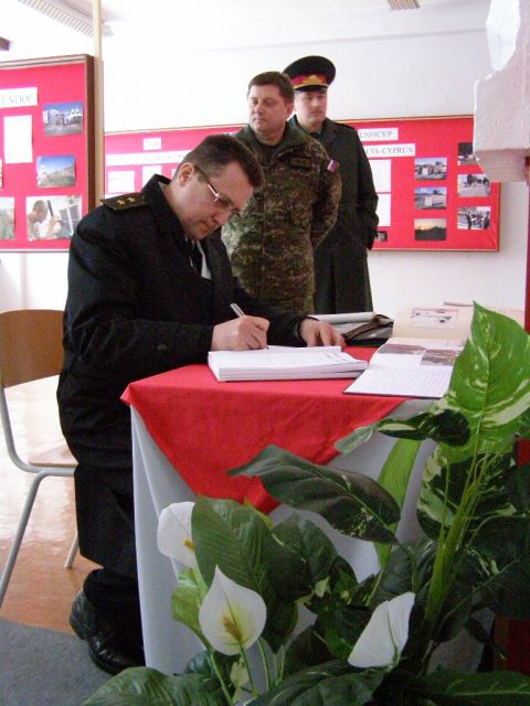 Po privítaní veliteľom Ženijného práporu PS OS SR, podplukovníkom Ing. Miroslavom MARCINOM nasledovala prezentácia ženijného práporu, ktorou veliteľ oboznámil Ukrajinskú delegáciu s činnosťou, hlavnými úlohami a prioritami ženijného práporu. Program návštevy pokračoval statickými ukážkami základných druhov vojenskej výzbroje a výstroja ženijného práporu, dynamickou ukážkou pokladania mostu pomocou AM-50, ukážkou odmínovacích prác pomocou odmínovacieho kompletu BOŽENA III, predstavením potápačskej učebne, ukážkou potápačskej výstroje a oboznámením Ukrajinskej delegácie formou krátkej prezentácie s výcvikom potápačov. Na záver bolo na programe krátke oboznámenie delegácie s históriou útvaru na sieni cti a tradícií a zápis do kroniky ženijného práporu.