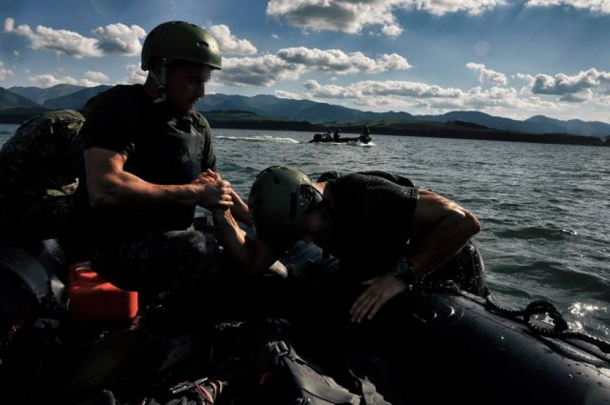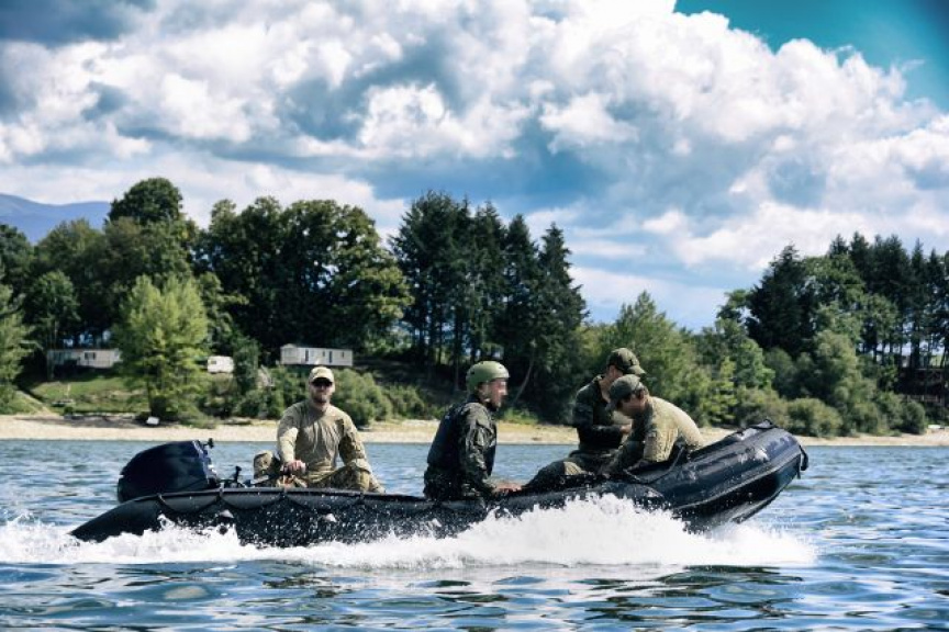 Spoločná výcviková aktivita pozostávala z niekoľkých častí. Ako prvé boli realizované cvičné zoskoky na vodnú hladinu z vrtuľníka z výšky 300 metrov. Činnosť výsadkára je obmedzená vykonaním povinných úkonov určených pre zoskok na vodnú hladinu. Po pristátí vojakov i s padákmi kolegovia vytiahli do člna a transportovali na breh.