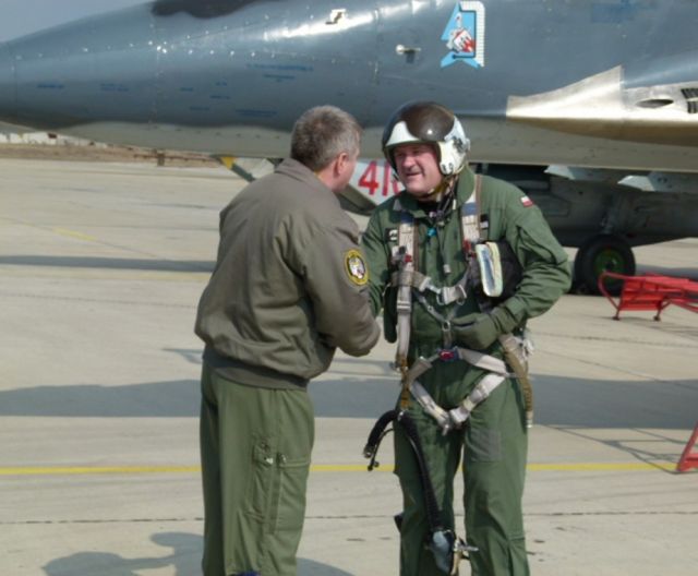 Po privítaní, počas krátkeho neformálneho rozhovoru s poľskými letcami v priestoroch trenažérového centra, veliteľ krídla vyjadril potešenie z návštevy, ktorá bola už dlhodobo plánovaná.