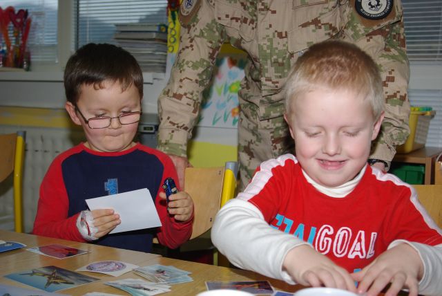 Skupina profesionálnych vojakov zavítala v stredu, 15. januára medzi deti a učiteľky zo Základnej školy pri Detskej fakultnej nemocnici, aby im v mene všetkých ochotných darcov dobrovoľnej finančnej zbierky odovzdali srdečný pozdrav, darčeky a tiež pomôcky potrebné na kreatívne práce. Ich výroba deťom aspoň čiastočne vypĺňa a spestruje čas, keď musia pobudnúť mimo svojho domova.