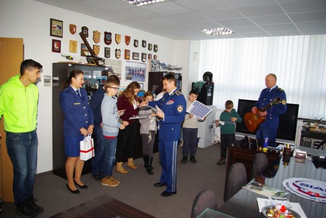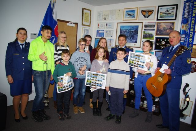 Precítené koledy a novoročné vinše deti adresovali všetkým príslušníkom vzdušných síl. Po vinšovaní a požehnaní priestorov im generálmajor Korba za krásne koledy poďakoval a na pamiatku im daroval pexesá s leteckou a protivzdušnou technikou a samolepky so znakmi hlavných odborností vzdušných síl.
