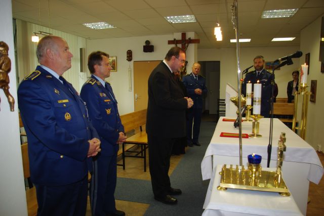 Súčasťou programu bola aj návšteva kaplnky veliteľstva vzdušných síl, kde sa predstavitelia cirkví spoločne s veliteľom vzdušných síl pomodlili za živých, zosnulých i padlých vojakov a zapálili obetné sviece. Milým prekvapením bolo vystúpenie speváckeho kvarteta vojenského dekanátu, ktoré hosťom zaspievalo duchovné piesne v cirkevnoslovanskom jazyku.