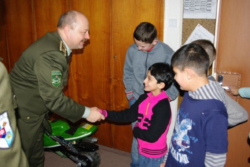 Brigádny generál Macko, spoločne s nadporučíkom Richardom Hlavňom a dôstojníčkou pre styk s verejnosťou Veliteľstva pozemných síl kapitánkou Lenkou Bušovou odovzdali notebook a detskú motorku deťom v jednej výchovnej skupine.
