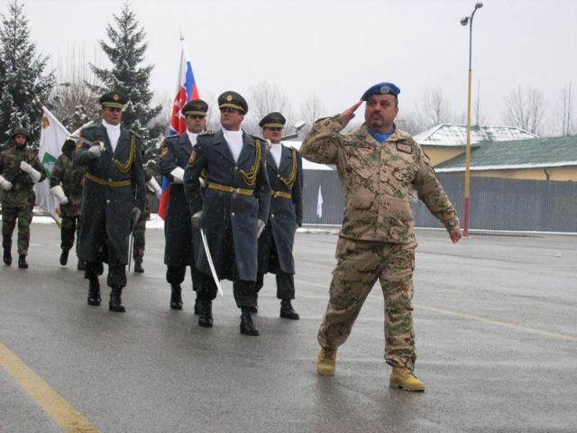 So želaním šťastného návratu s príslušníkmi jednotiek UNFICYP rozlúčil veliteľ pozemných síl OS SR generálmajor Jaroslav VÝVLEK za účasti náčelníka štábu pre operácie GŠ OS SR generálmajora Jána SALAGANIČA a náčelníka štábu pozemných síl OS SR plukovníka generálneho štábu Karola NAVRÁTILA.